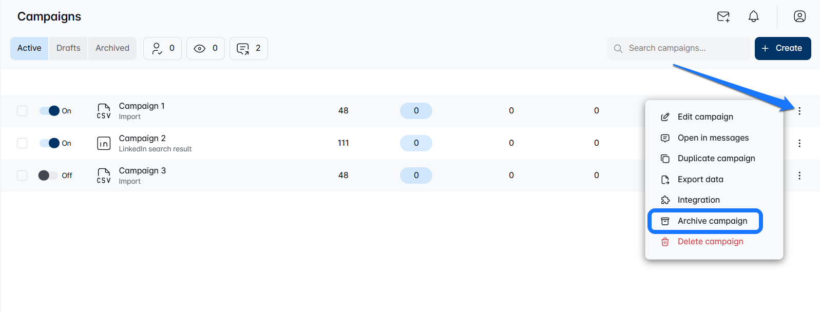 Keep your Lead Loader dashboard clutter-free by archiving past campaigns! ๐๏ธ Archive any campaign via the three dots menu, then switch to Archived Campaigns to access and restore as needed. This feature helps you stay organized while keeping campaigns available for future reference. Ready for a tidier workspace? Happy organizing! ๐๐