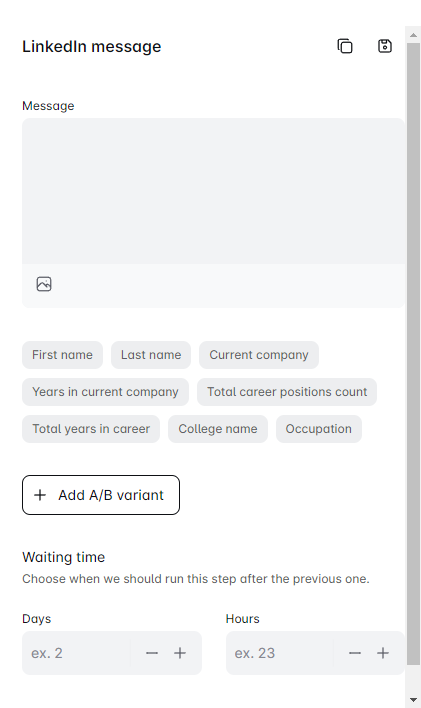 - LinkedIn message 💬: This sends a LinkedIn message to your 1st-degree connections.